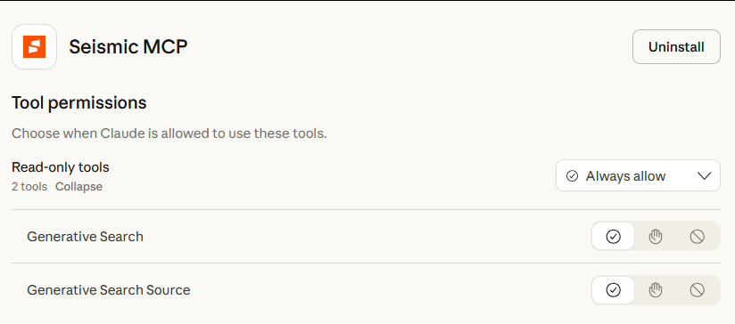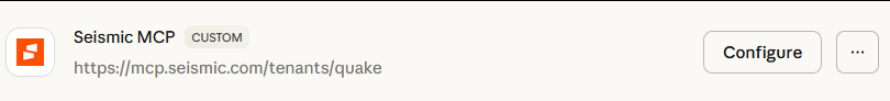 - Remote MCP Server Url: https://mcp.seismic.com/tenants/YOUR_TENANT_NAME