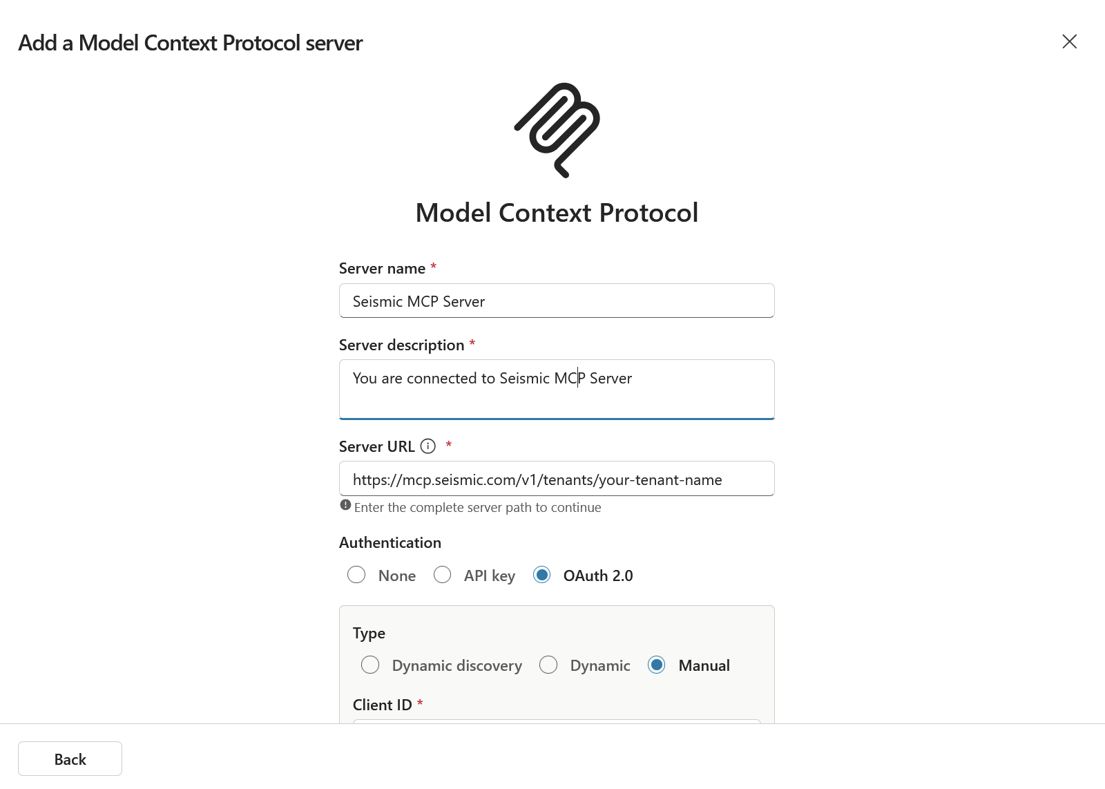 How to connect to Seismic's Remote MCP Server from Copilot Studio Agent